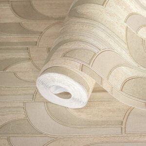 Tapet Vinil Superlavabil, tratat UV, Antibacterian, Ignifug, model Abstract, bej, rola – 1.06m x 10m = 10.6mp