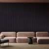 Designul liniar tip riflaj contribuie la îmbunătățirea confortului acustic, ajutând la reducerea ecoului și a zgomotului ambiental. Nuanța negru perlat creează un contrast elegant și un ambient premium, fiind ideală pentru amenajări moderne, contemporane sau industriale.