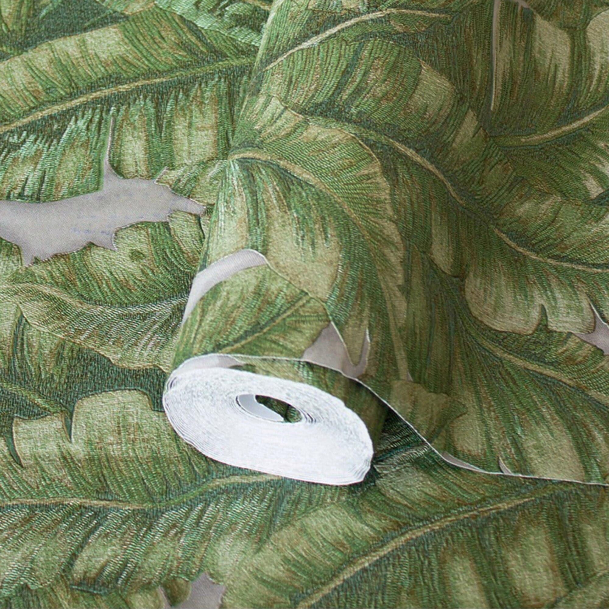 Tapet Vinil Superlavabil, Model Frunze Tropicale, Verde, UV, Antibacterian, Ignifug, Rolă 10.6 mp